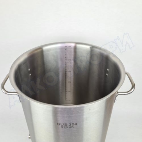 Перегонный куб из пищевой нержавеющей стали AISI 304 кастрюльного типа. Используется с дистилляторами (самогонными аппаратами) в качестве емкости нагрева спиртосодержащих жидкостей.