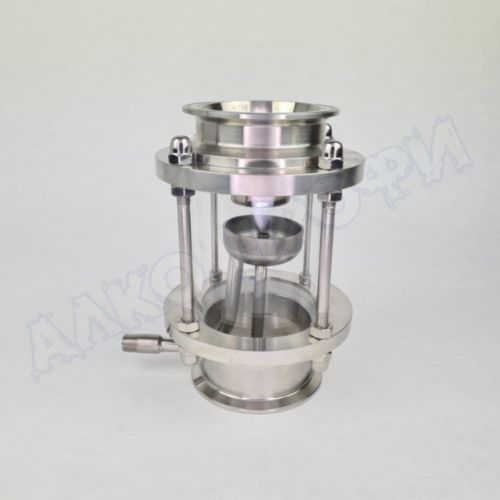 С помощью диоптра с узлом отбора очень удобно устанавливать флегмовое число, контролировать “предзахлебные” состояния, не допуская “захлеб” колонны, и визуально контролировать весь процесс.
