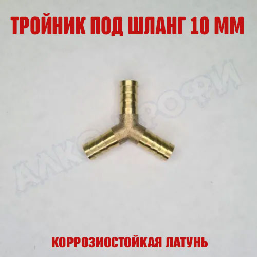 Тройник У-образный под шланг 10мм - латунный тройник для шлангов с внутренним диаметром 8-10мм. Отлично подходит для разветвления потока воды на дефлегматор и холодильник.